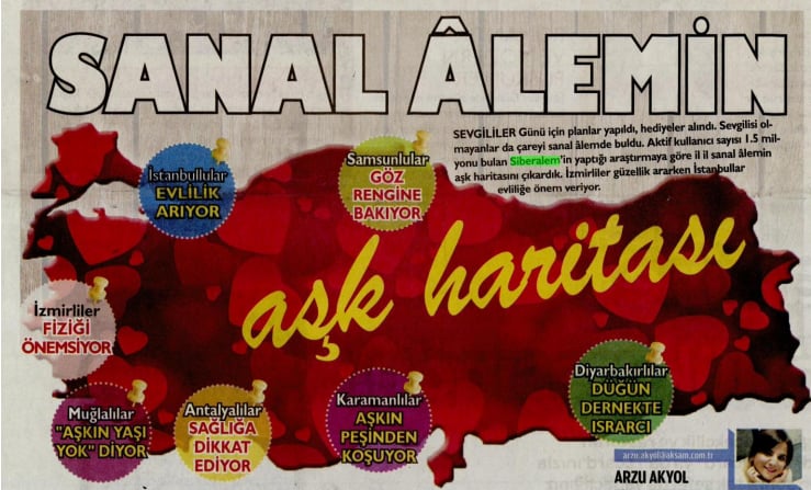 Siberalem, Türkiye’nin ilk ve en büyük arkadaşlık platformu olarak, Akşam Gazetesi’nden Arzu Akyol’a misafir oldu. 13 Şubat 2016 Cumartesi günü yayınlanan haberimiz: